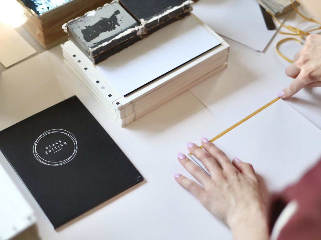 Vznikl kombinací ofsetového tisku vnitřních listů, digitálního potisku černé lepenky a ručně šité knižní vazby.