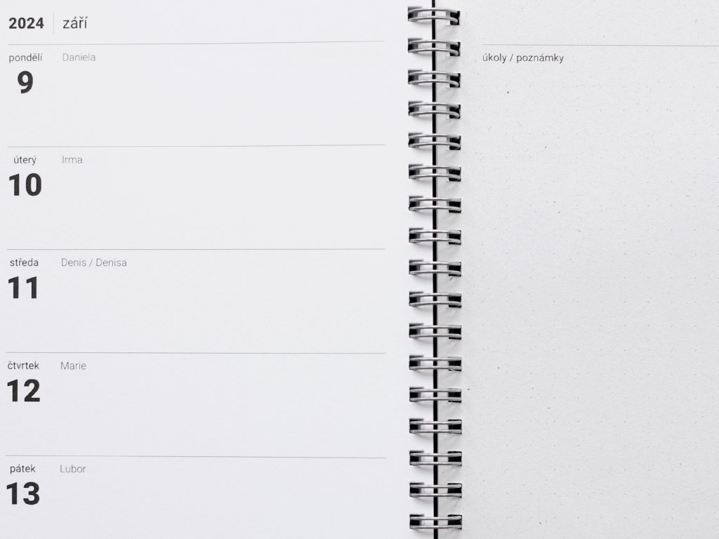 Praktický formát diáře dlouhodobě vyhovuje požadavkům na střídmost s adekvátním dostatkem prostoru.
